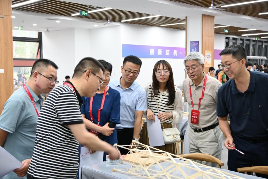 本届比赛为期4天,结构组赛题为“考虑水平振动的高耸塔式结构设计与模型制作”,以承受水平荷载和竖向荷载的塔式结构为对象,要求在比赛现场设计制作一个塔式结构模型,承受水平荷载与竖向荷载。赛题以多种荷载工况以及模型高度为主要难点,考察参赛选手对不同荷载工况组合的分析与计算能力,使其更具现实工程意义。