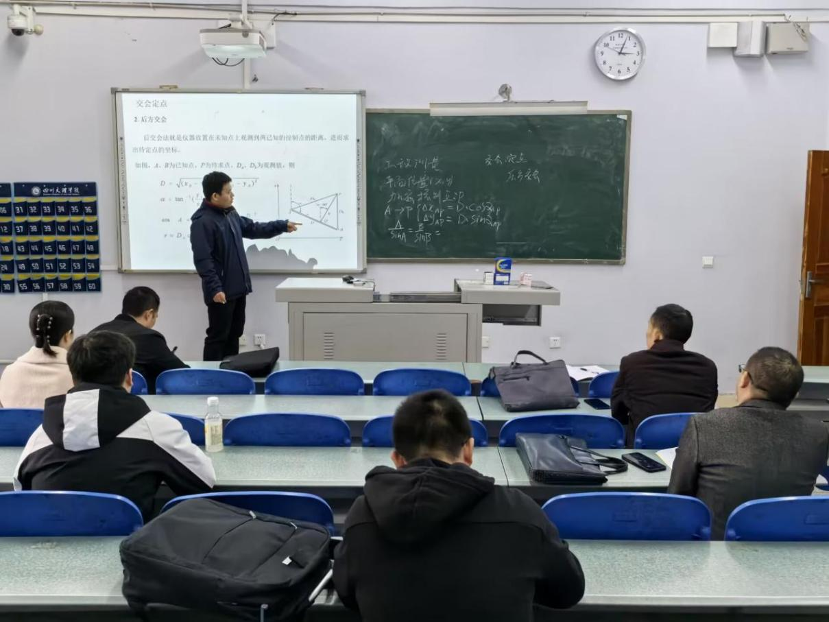石宁卓老师进行了题为“交汇定点”的课程展示,通过理论联系实践,向大家介绍了“交汇定点”的具体计算过程。同时,讲到了革命时期在一些战略要地的工事修筑中,精准的交汇定点能够确保工事的位置准确,为保卫革命根据地发挥重要作用。