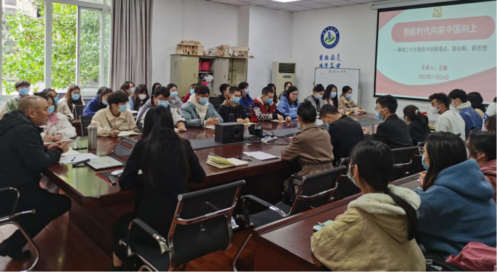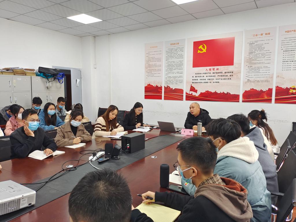 11月24日中午,公司党总支书记王峰在博文楼120A会议室为员工党支部党员作题为“领航时代向前中国向上”的党课讲座,讲座对党的二十大报告中的新观点、新论断、新思想进行了宣讲和解读。公司专职辅导员,员工党员、预备党员、发展对象和马列部全体同学参加会议,会议由明巧老师主持。