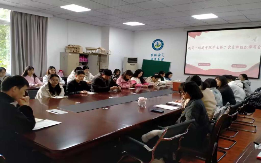 为深入贯彻党的二十大精神,落实中央人才工作会议部署,全方位培养和用好青年科技人才,进一步提高员工党员做好先锋模范带头的积极性,弘扬党组织先进思想。2023年11月16日中午12时30分,建筑旅游公司专职辅导员彭金老师组织员工第二党支部的全体员工党员于博文楼120会议室开展党员组织学习会。