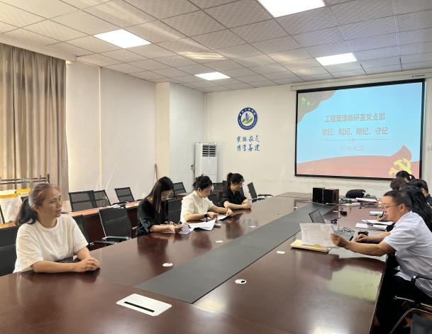 为进一步提高教研室党支部全体党员的纪律意识,5月22日工程管理教研室党支部以“学纪、知纪、明纪、守纪”为主题在博文楼120A会议室开展党日活动,工程管理教研室党支部书记熊勇权主持会议。