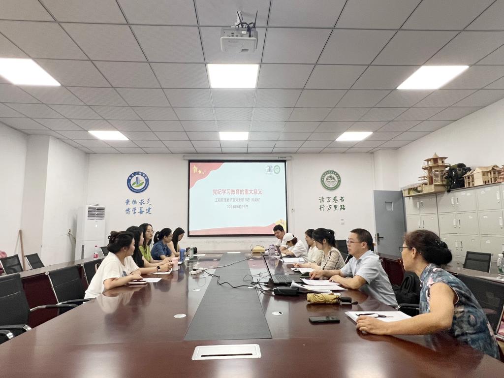 2024年6月19日,工程管理教研室党支部书记熊勇权以“党纪学习教育的重大意义”为主题在博文楼120A会议室为支部党员讲授党课。