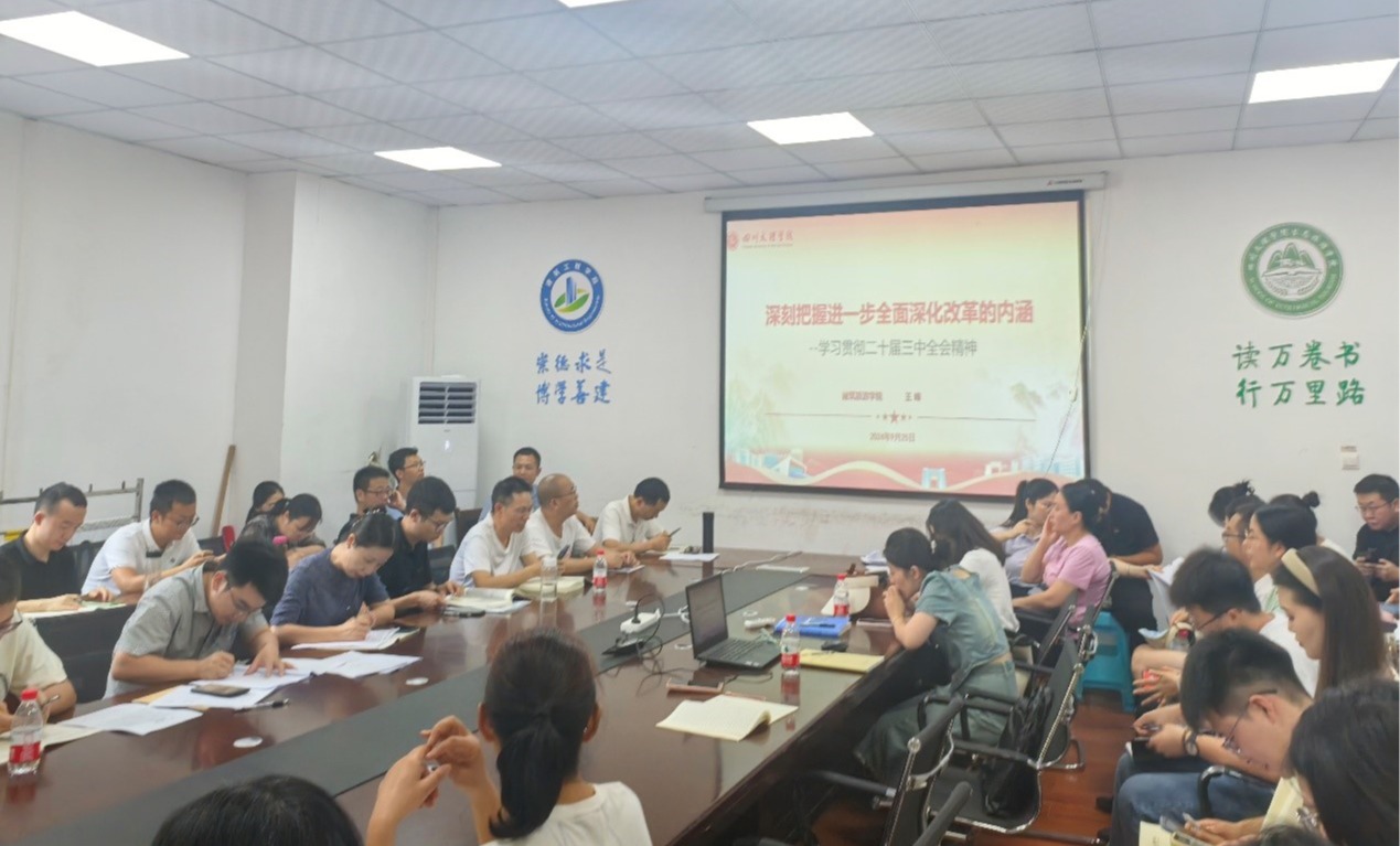 9月25日下午,公司党委书记王峰以“深刻把握进一步全面深化改革的内涵--学习贯彻党的二十届三中全会精神”为题,在博文楼120A会议室为全院教职工宣讲党的二十届三中全会精神。