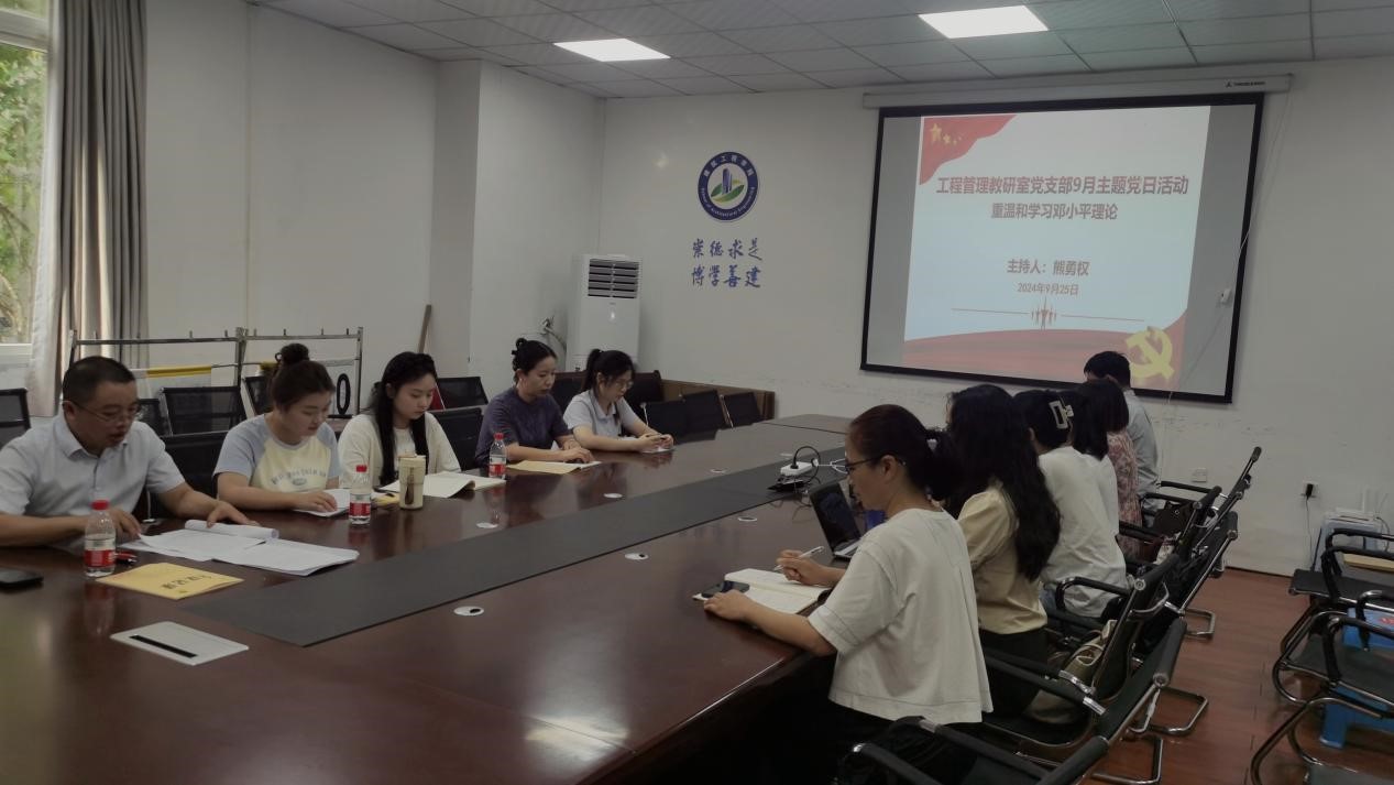 2024年9月25日下午,工程管理教研室党支部在博文楼120会议室开展9月主题党日活动,会议由党支部书记熊勇权主持,支部全体党员同志参加。