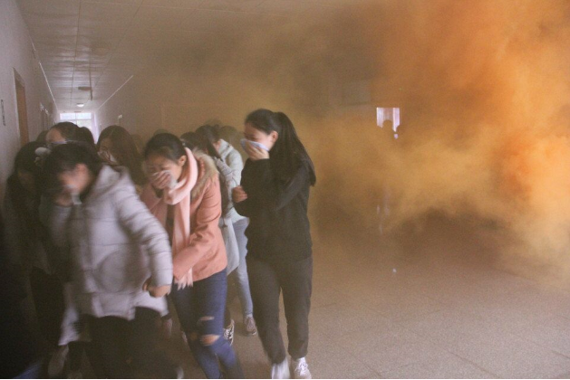下午六时,一教楼两侧安全出口处安放的烟雾弹被拉开,随即火警铃响起,演练正式拉开帷幕。同学们迅速、有序地按照消防逃生路线安全疏散。疏散过程中,同学们都按照火灾逃生技巧,用湿毛巾捂住口鼻,靠着墙低着腰,穿过浓烟滚滚的楼道,在短时间内到达指定集结地点。最后,靳浪老师对此次演练作总结,他指出,当灾难突然降临,平时所谓的文明和矜持恐怕会在一瞬间被慌乱和野蛮所覆盖。人在面临危险时所做出的应激反应往往能够决定生死。因此,只有经过多次的演练,牢牢掌握基本技能,才能将危难时刻化险为夷的几率提高。他以达州好一新特大火灾等案例告诫同学们,火灾事故一旦发生,后果不堪设想。他强调,大家一定要高度重视消防演练,把演练当成实战,在寝室注意用电安全,严防火灾事故,共同构建平安和谐校园。