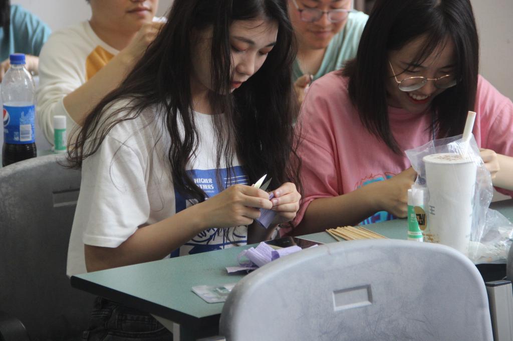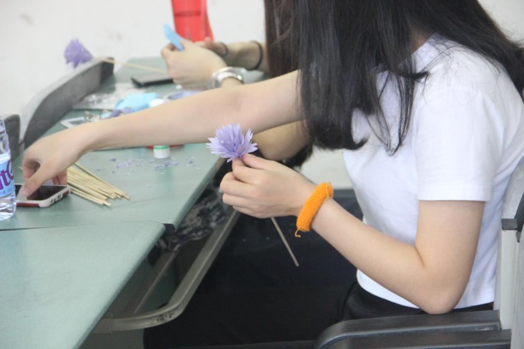 活动分为两个部分。第一部分为“感受母爱”。组织同学们观看与母亲相关的影片,观影结束后,同学们上台就影片内容谈感想。第二部分为“感恩母爱”。团总支社会实践部带领同学们前往手工教室制作康乃馨纸花。大家认真制作纸花并附上自己对母亲的感恩与祝福,拍照发给远在他乡的母亲。另外,同学们把想要对母亲诉说的心里话写在便利贴上,随机用绳子串起来展出。一朵朵制作精美的纸花,一条条迎风飞舞的彩绳,是游子对母亲的深深祝福。