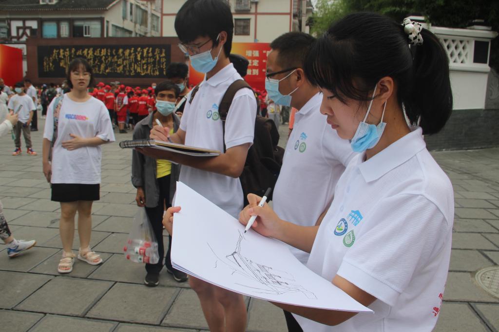 图为孙小涛老师带领城乡规划组对遵义会议纪念馆进行速写。赵文洁摄