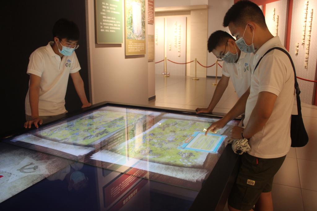 图为实践队员正在馆内利用多媒体设备了解四渡赤水路线图。赵文洁 摄