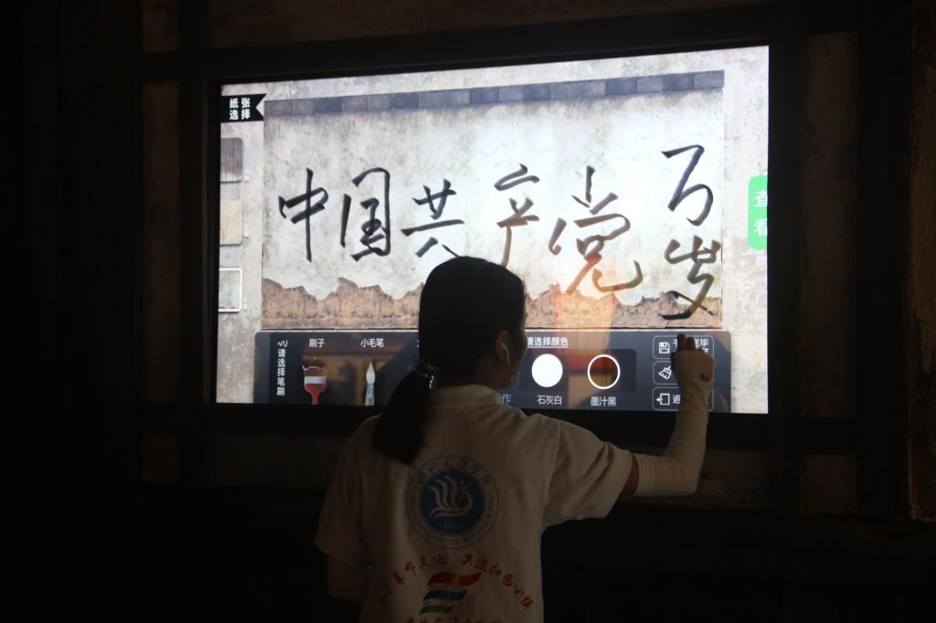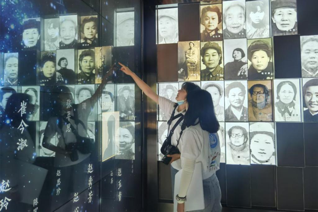 图为团队队员在了解女红军的英雄故事。赵文洁 摄