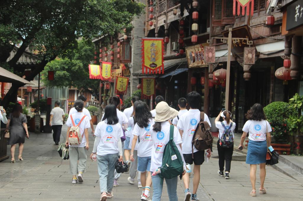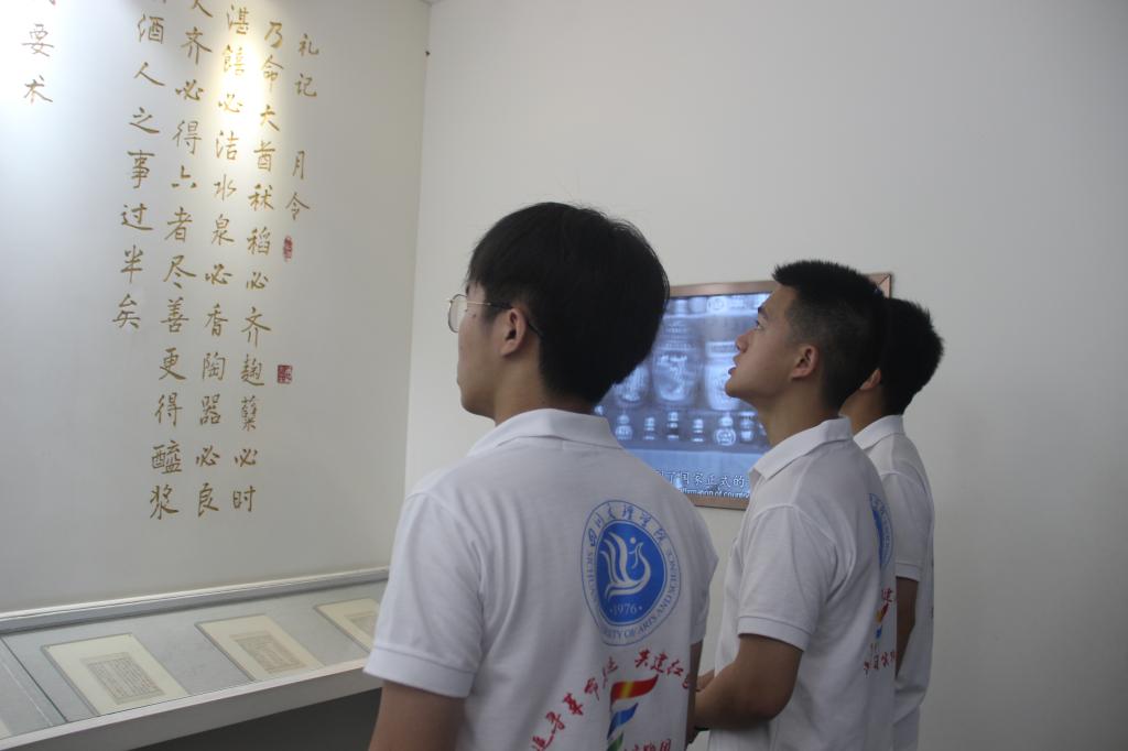 图为团队成员在中国酒文化城内了解关于酒的历史文化。 赵文洁 摄