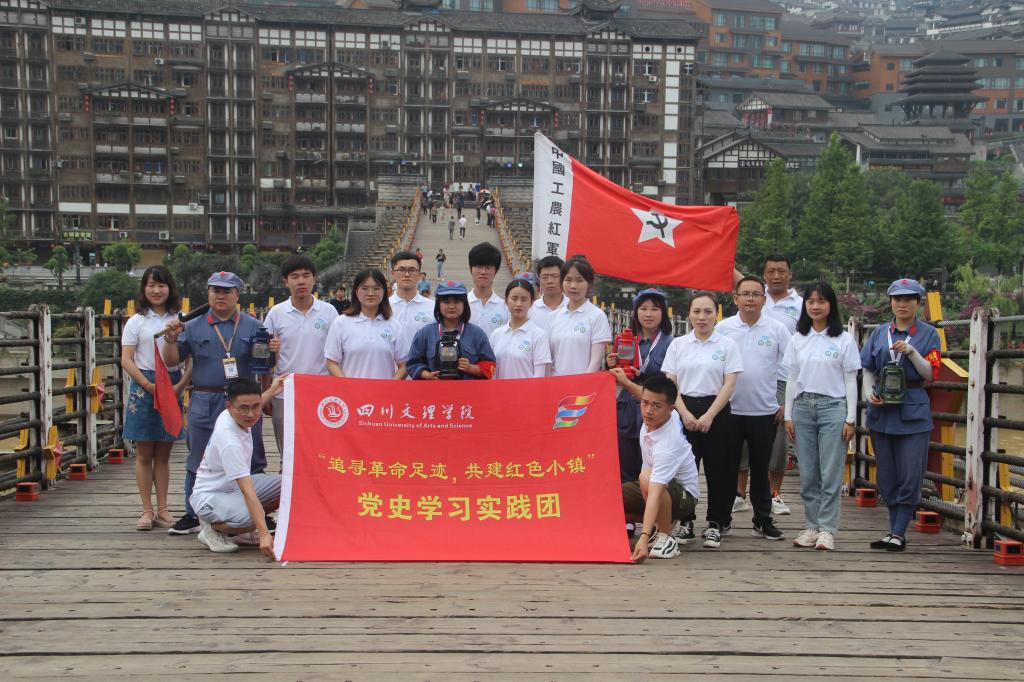 图为实践团队同当地的红色志愿者进行关于红色文化的交流后,在红军桥上合影留念。 赵文洁 摄