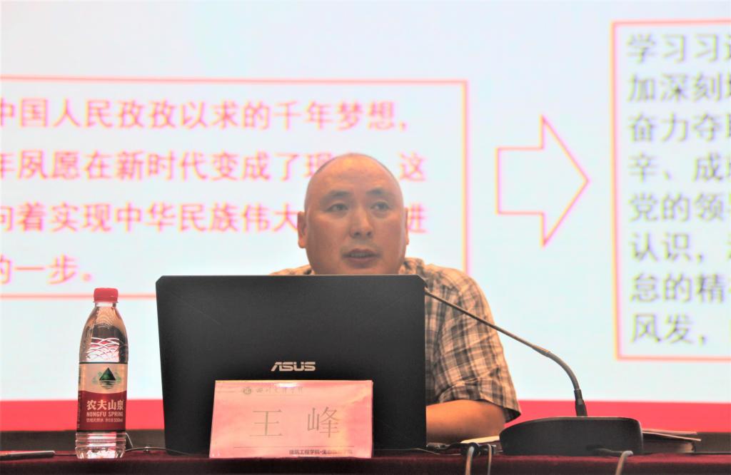 2021年9月17日晚,公司党总支书记王峰在艺术传媒大楼多功能厅为2021级新生作题为“百年历史铸辉煌,砥砺初心向复兴”—-学习贯彻习近平总书记“七一”重要讲话精神的入学理想信念教育讲座,明巧老师主持讲座。