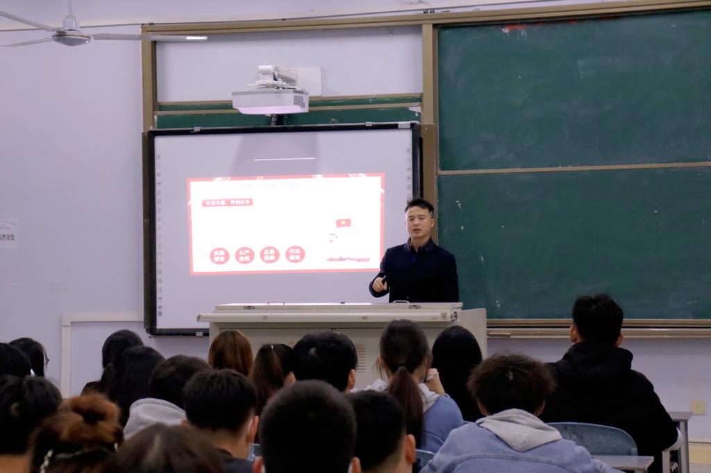 2021114日晚19:00,公司党总支副书记靳浪在博文楼414教室为全体员工党员及入党积极分子讲了一堂党课。
