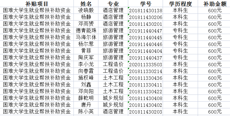 2022年高校家庭经济困难和就业困难毕业生就业帮扶经费申报名单