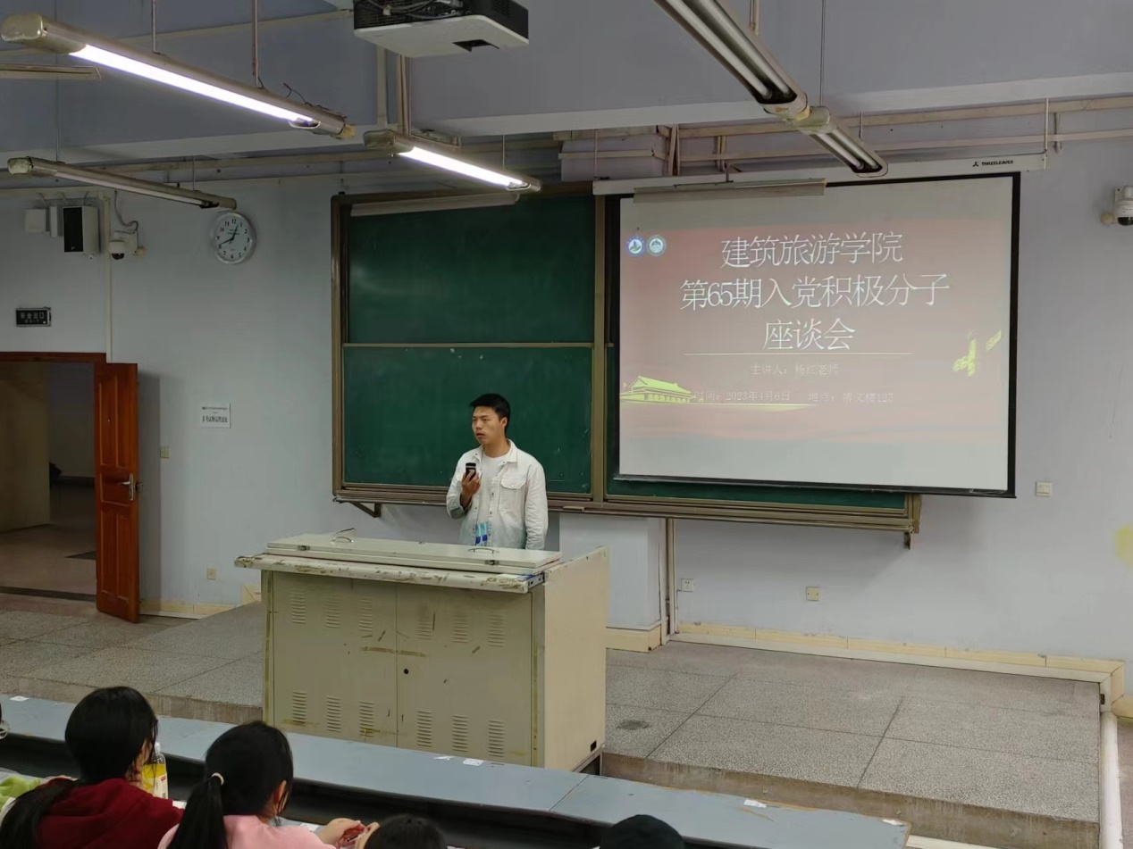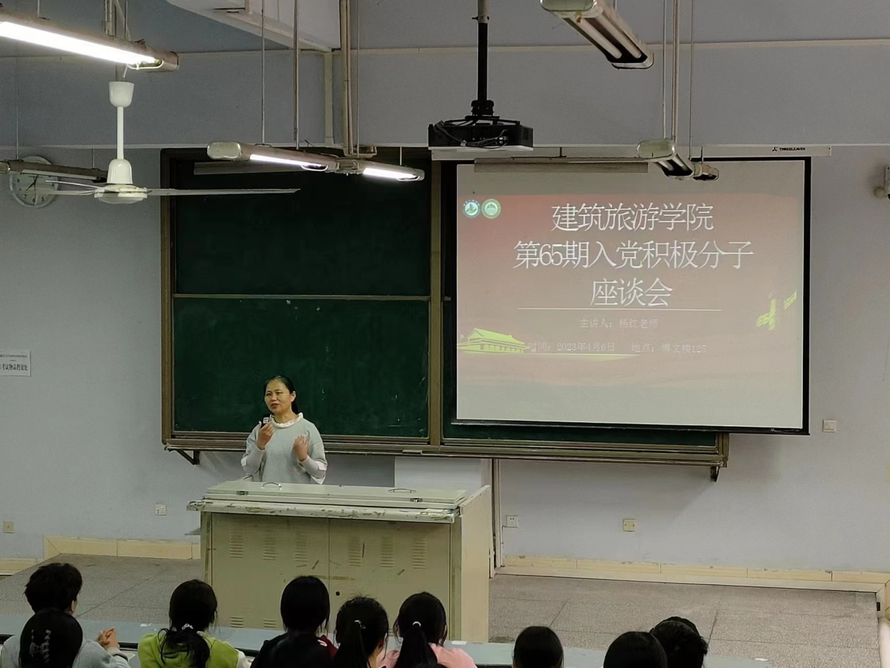 为坚定同学们的理想信念,纯洁入党初心,立志成才报国。4月6日中午12:30,建筑旅游公司第65期入党积极分子座谈会在博文楼125教室召开。本次座谈会由公司马列部主办,杨红老师主讲。