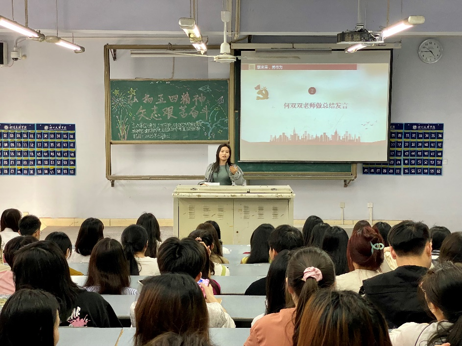 春夏之交,草木葱郁、生机勃发。为了弘扬五四精神,建筑旅游公司于2023年5月4日下午16:00,在博文楼124教室开展了主题为“弘扬五四精神 矢志艰苦奋斗”的团日活动,专职辅导员何双双、第65期入党积极分子、第10期发展对象及各班级团支书参会。公司团学组织部部长郭丹支持本次会议。