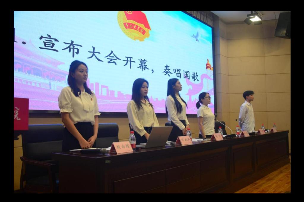 团学代会共分为五项议程。首先,全体起立奏唱国歌。接着,上届团总支副书记胡雨蝶、员工会主席刘茂枭分别代表团总支、员工会做上年度工作报告。报告总结了上届团学的工作经历,并为下届团学的工作提出建议。