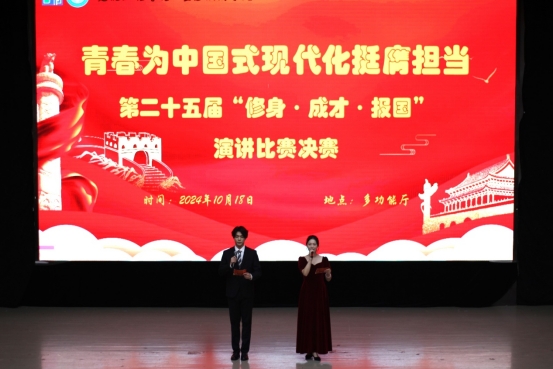 为引领广大青年深刻领悟时代使命,鼓励广大青年为中国式现代化进程注入多元智慧和创新活力,10月18日晚7点,公司在艺术传媒大楼多功能厅成功举办以“青春为中国式现代化挺膺担当”为主题的第二十五届“修身·成才·报国”演讲比赛决赛。公司党委副书记莫春梅、学工办副主任田林、专职辅导员明巧到场并担任比赛评委,公司各班员工代表到场聆听比赛。