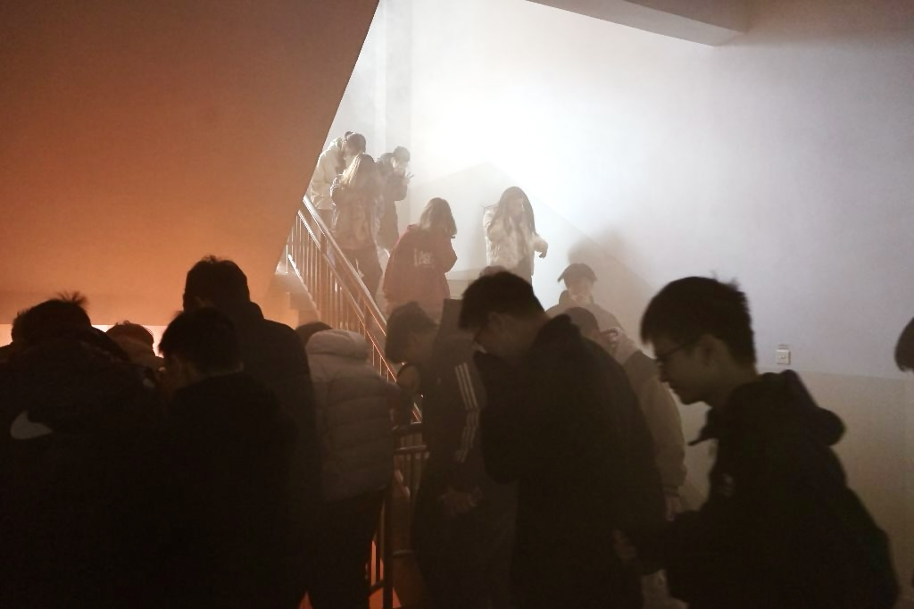 随着尖锐的火灾报警声响起,演练正式开始。参演员工迅速进入紧急疏散状态,在引导人员的指挥下,员工们用湿毛巾捂住口鼻,弯腰低姿,按照预定的疏散路线,通过楼道有序地向安全区域疏散撤离。在整个过程中,同学们保持冷静,行动迅速,没有出现恐慌和混乱的情况。整个疏散过程仅用时几分钟,充分展示了公司员工在消防安全方面的高度警觉和应急能力。