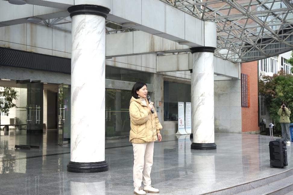 在撤离到预定安全位置之后,公司专职辅导员王运就此次演练做出总结。王运老师表示,公司员工遵守规则,撤离有序。同时,王运老师用火灾实例提醒同学们要时刻注意消防安全,并为大家送上暖心的消防安全小知识。
