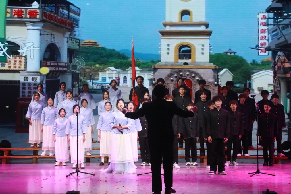晚会在火力全开的开场模特秀《nothing holding me back》中拉开序幕,模特们自信强大的气场瞬间点燃了现场气氛。紧接着,活力四射的团体舞蹈《家有儿女+你要跳舞吗》闪亮登场。歌曲、小品、舞蹈、朗诵等节目轮番上演。教师参演的歌曲串烧《如愿+日不落+吉他演奏》让同学们深深感受到了师者的温情与活力;小品《来点热线》、《脆皮老员工》以幽默诙谐的方式演绎了校园生活的点滴故事;舞蹈《水》、《拉丁+寄明月+This is me+爵士》将传统舞蹈与现代审美精妙融合,为观众们带来了一场美轮美奂的视觉享受;青年朗诵《觉醒年代》以坚定的语调抒发出新时代青年的壮志豪情;汉服表演《唐印绘锦图》优美的舞姿展现了我国民族文化的独特魅力,合唱节目《紫荆花盛开》真挚的歌声,悠然的旋律庆祝着香港回归 27周年。晚会在莘莘学子对祖国热爱的《我爱你中国》歌声中圆满落幕。