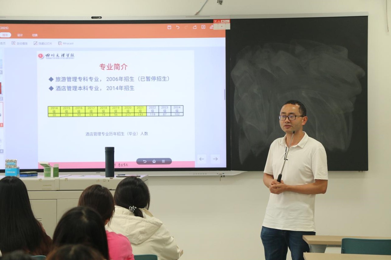 旅游管理教研室主任陈国柱副教授围绕“酒店管理专业认知与职业生涯发展蓝图”展开深度分享,从专业内涵、学习目标、方法及就业方向等维度进行立体解读。结合权威市场数据与行业前沿动态,深入剖析了酒店管理行业的现状、未来趋势,以及特色住宿业态、数字化酒店运营等新兴领域,引导新生紧扣行业脉搏规划职业发展,为职业之路构建清晰的成长框架。