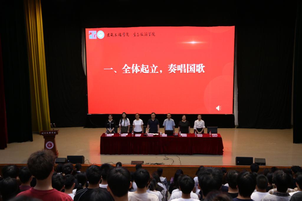 在庄严肃穆的国歌声中拉开序幕。全体师生齐唱国歌,心中涌动着对祖国的无限热爱与祝福。会上,经理彭洪斌教授对院的团队力量、办学规模各专业详情以及员工未来的就业等进行了介绍。让同学们更全面了解自己就读的专业,确定好人生目标。