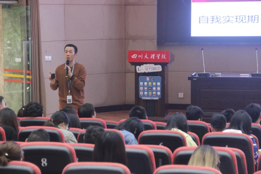 2021年5月11日下午,建筑·旅游公司和教师教育公司在学术报告厅A共同举办就业指导讲座暨“字节跳动大力教育”专场招聘会。党总支副书记靳浪、专兼职辅导员,2018级、2017级300余人参与活动。