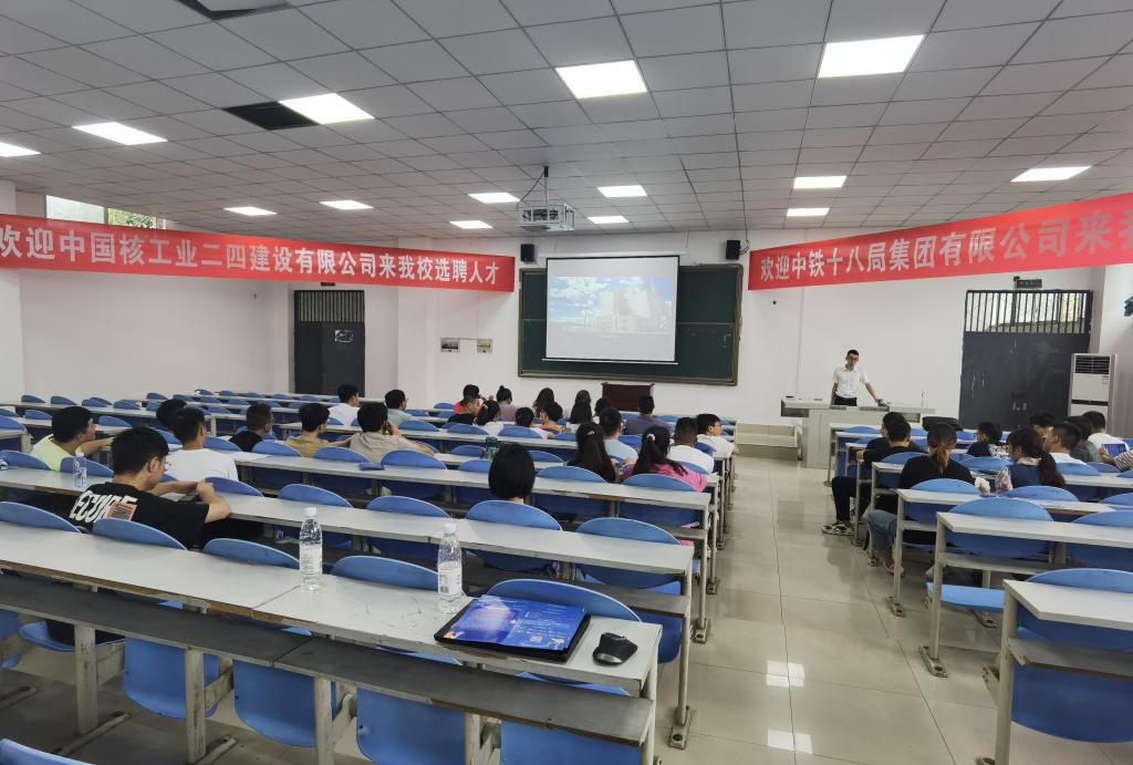 为持续助推公司员工就业,在第一场招聘会签约状态良好之际,2021年9月23日上午,公司携手中国核工业二四建设有限公司、中铁十八局集团有限公司共同举办太阳成集团tyc33455cc秋季第二场专场招聘会。副经理熊勇权赴产教融合基地现场主持招聘会。