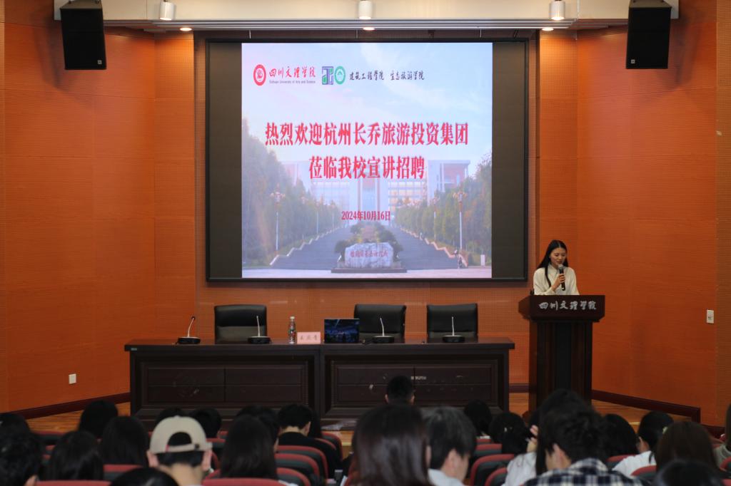 为积极拓宽毕业生就业渠道,大力促进毕业生及时就业、顺利就业,10月16日,公司特邀杭州长乔旅游投资集团有限公司在莲湖校区学术报告B厅开展宣讲招聘活动,近200名2025届毕业生参加。活动由公司专职辅导员明巧主持。