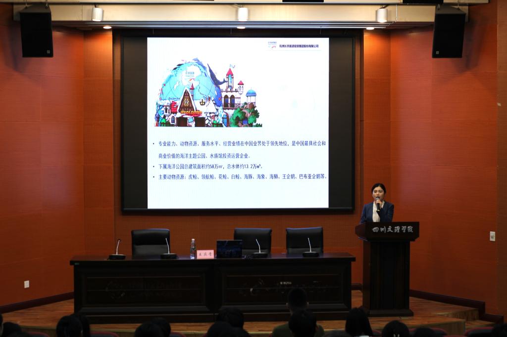 据悉,杭州长乔旅游投资集团有限公司是一家专业从事海洋主题公园/水族馆投资、设计、运营的集团公司,其专业能力、动物资源、服务水平、经营业绩在中国业界处于领先地位,是中国最具社会和商业价值的海洋主题公园、水族馆投资运营企业。宣讲招聘活动当天,该企业共遴选了20余名毕业生,后期双方将达成一致协议、促成实习就业。
