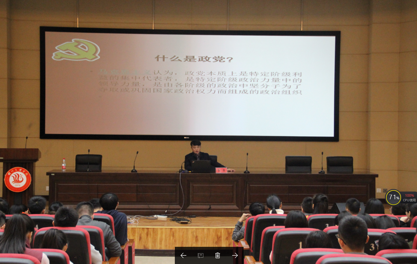 靳老师用风趣幽默、通俗易懂的语言,结合自身经验带领在座学子进一步学习了十九大部分内容。同时使在场的新生了解了入党的基本知识,明白了入党是一件光荣且神圣的事。