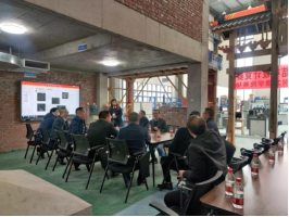 考察伊始,首先由付琴老师对工程训练中心建筑实体模型楼项目的工程概况、建设情况、教学应用及建设成果进行了讲解,然后在彭洪斌经理和熊勇权副经理主持下,对建筑实体模型楼项目相关问题开展了交流讨论。