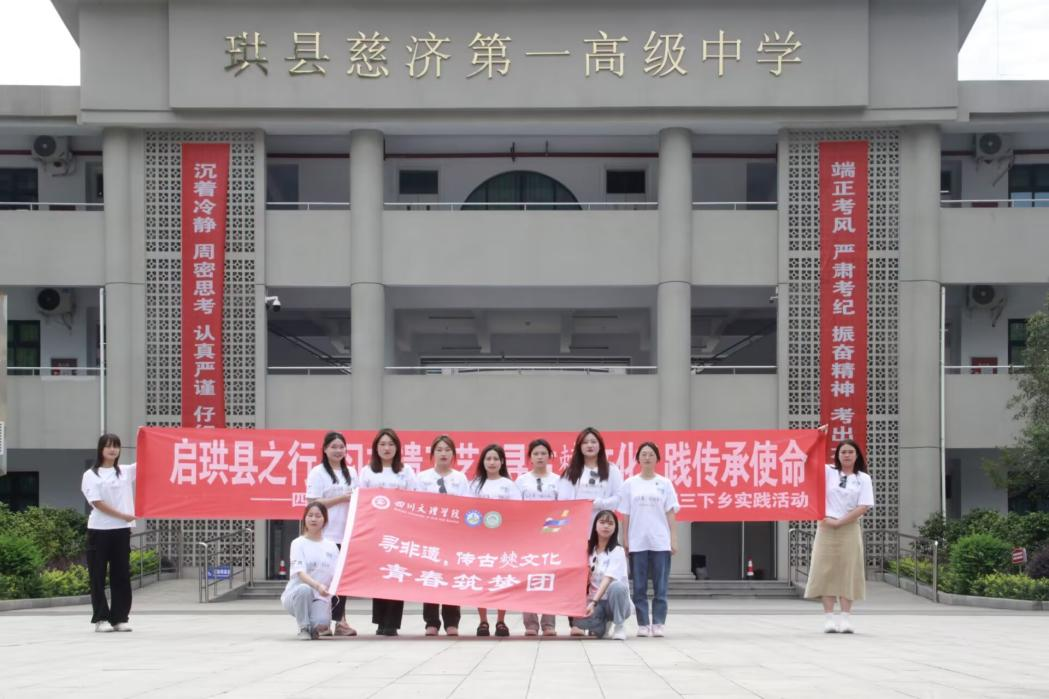 7月8日, 青春筑梦团的“三下乡”实践已接近尾声。当天,团队来到珙县慈济第一高级中学,将非遗文化带进校园。团队以珙县历史和非遗文化为题,借非遗文化不断没落甚至消失的原因,引导同学们深思当代青年应如何传承文化历史使命。最后,青春筑梦团结合自身经历,为在座同学的高三生活及学习方法提出诚恳建议,鼓励同学们奋发图强,争做时代先锋。