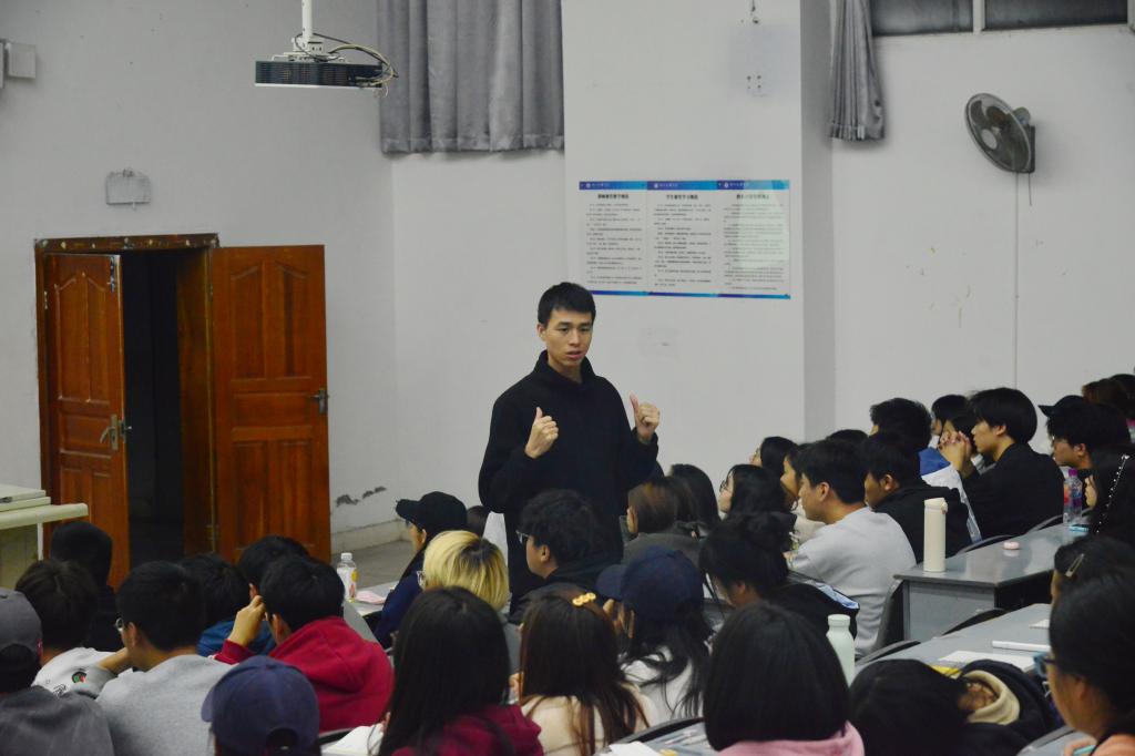 彭金以当代老员工迷茫的典例现状切入主题,让同学们深刻明白躺平摆烂不可取,应克服大学中迷茫的现状。期间,通过小游戏,让同学们通过心理暗示减轻自己心中对于学业,生活上的精神压力。同时,他列举同学们迷茫的六大原因,从心理学的角度深入分析,指出同学们要在信念以及行动上解决自己的消极思想,在行动上积极进取,勇于突破自己。