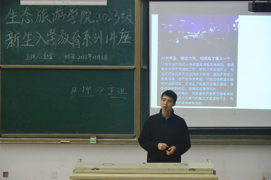 为了让公司新生更好地适应老员工活,明确目标,11月3日20时,莲湖校区博文楼114教室,由公司专职辅导员彭金主持的生态旅游公司2023级新生入学教育系列讲座准时召开,酒店管理,城乡规划全体新生参与。