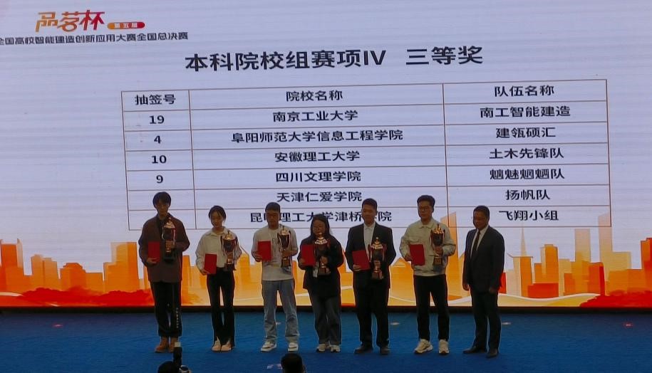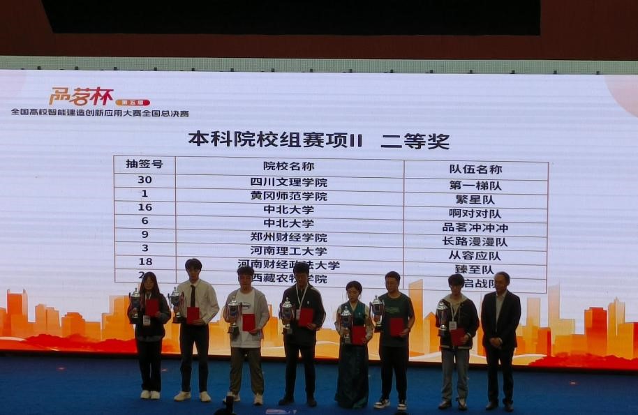 本次大赛共有来自全国 31个省、市、自治区的386所高校、1122支参赛队伍报名参赛。经过晋级赛评审专家评审后,最终有484支队伍晋级全国总决赛。本次全国总决赛包含中国地质大学、福州大学、四川农业大学、西华大学、河南财经政法大学等众多知名院校,经过现场激烈地角逐,由付琴老师指导的第一梯队员工罗宇航、刘玉峰、李云飞、刘皓月获得数字化工程造价管控专项二等奖(全国第5名);由乔晓青、张杉老师指导的魑魅魍魉队员工马秋艳、李欣燕、梁莉苹、饶程轩获得智能建造技术应用专项三等奖(全国第10名)。