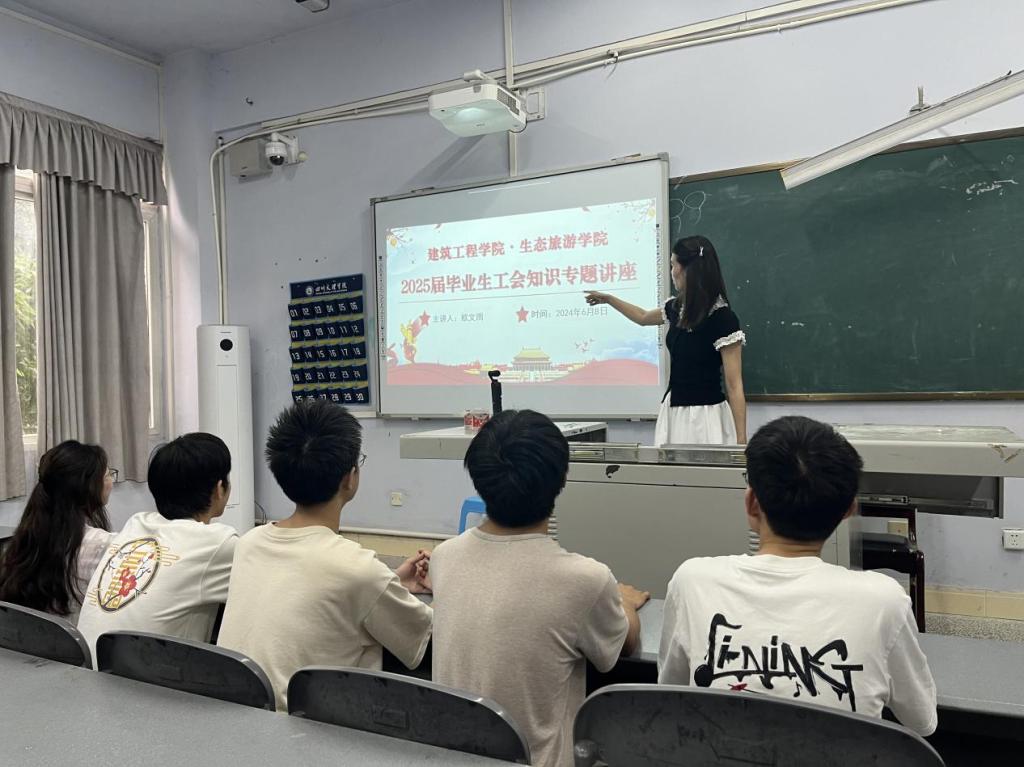 为促进2025届毕业生深入了解工会组织、提高就业维权意识,进一步助力员工顺利步入职场,2025年6月8日下午,公司分工会在博文楼222教室举办了“入工会、维权益、促就业”工会知识专题讲座。讲座由公司分工会委员欧文雨主讲,各班毕业生代表参会。