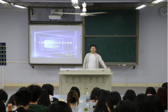 6月10日晚,由科技处主办、生态旅游公司承办的“AI赋能智慧酒店的未来展望”学术讲座在博文楼227教室圆满结束。本次讲座由刘志乾博士主讲,公司2023级、2024级酒店管理专业全体员工及酒店管理专业部分教师参加。