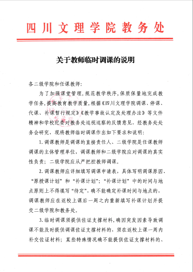 太阳成集团tyc33455cc教务处关于教师临时调课的说明