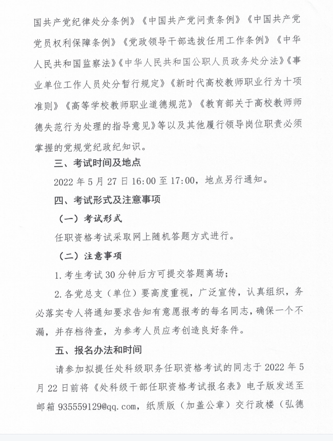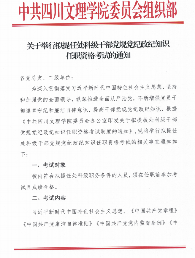关于举行提任处科级干部党规党纪政纪知识任职资格考试的通知