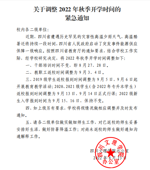 关于调整 2022 年秋季开学时间的紧急通知