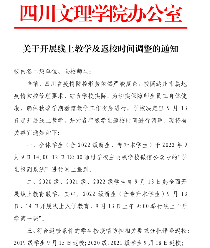 关于开展线上教学及返校时间调整的通知