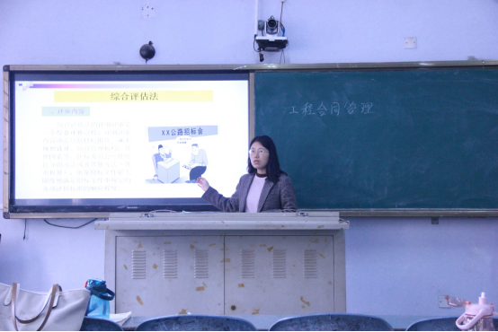 乔晓青老师在“工程合同管理”课程中进行了题为“综合评估法”的课程展示。在评课交流时,乔晓青老师通过实例引出课程内容、逻辑清晰、教学内容流畅、旧知识复习-新知识学习-课程总结-参考资料-布置作业的完整教学获得评课老师的共同认可,提出了加强与员工互动的建议。