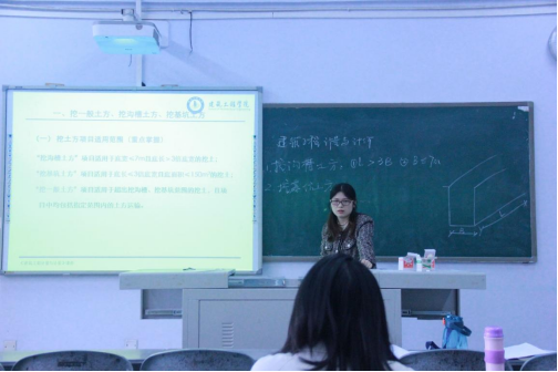 付琴老师在“建筑工程计量与计价”课程中进行了题为“挖沟槽土方工程量计算”的课程展示。在评课交流时,付琴老师的教学过程重难点知识突出、教学过程完整、板书工整、PPT中配有工程实际案例图片和例题演练更好帮助员工理解知识点等获得了评课教师的一致认可,提出了加强与员工互动的建议。