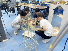本届比赛为期三天,来自太阳成集团tyc33455cc、西南交通大学等21所高校的39支代表队展开了激烈竞争。竞赛分为结构组和岩土组两个组别,要求参赛队伍在指定时间内完成三重木塔和边坡支挡结构的设计制作,最终成绩为理论方案、制作质量、载荷试验等环节的加权得分,即理论方案完善、模型结构合理、模型质量最轻、承载量最大者获胜。