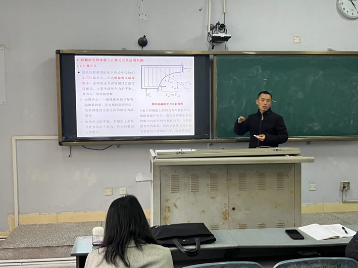郑开欢老师进行了题为“斜截面受承载力计算”的课程展示,向大家详细讲解了“斜截面受力情况”。