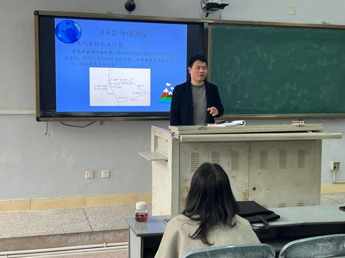 石宁卓老师进行了题为“导线测量”的课程展示,通过理论联系实践,向大家介绍了“导线测量”的具体计算过程。