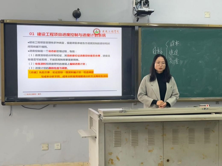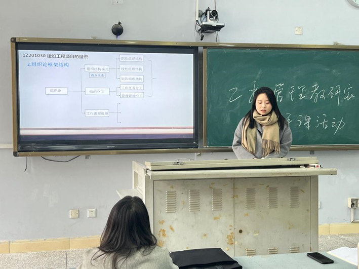 在活动中,邓钰婷老师进行了题为“建设工程项目组织”的课程展示,以“大学”“董事会”等例子,形象生动地向大家讲解了“建设工程项目组织的结构框架”。
