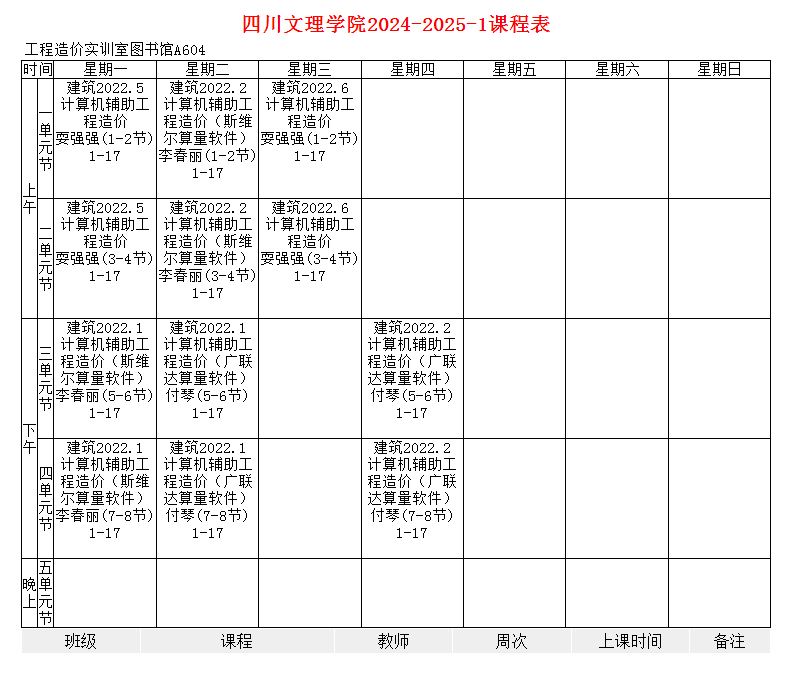 建筑工程技术实验教学示范中心2024-2025-1学期实训实验课程
